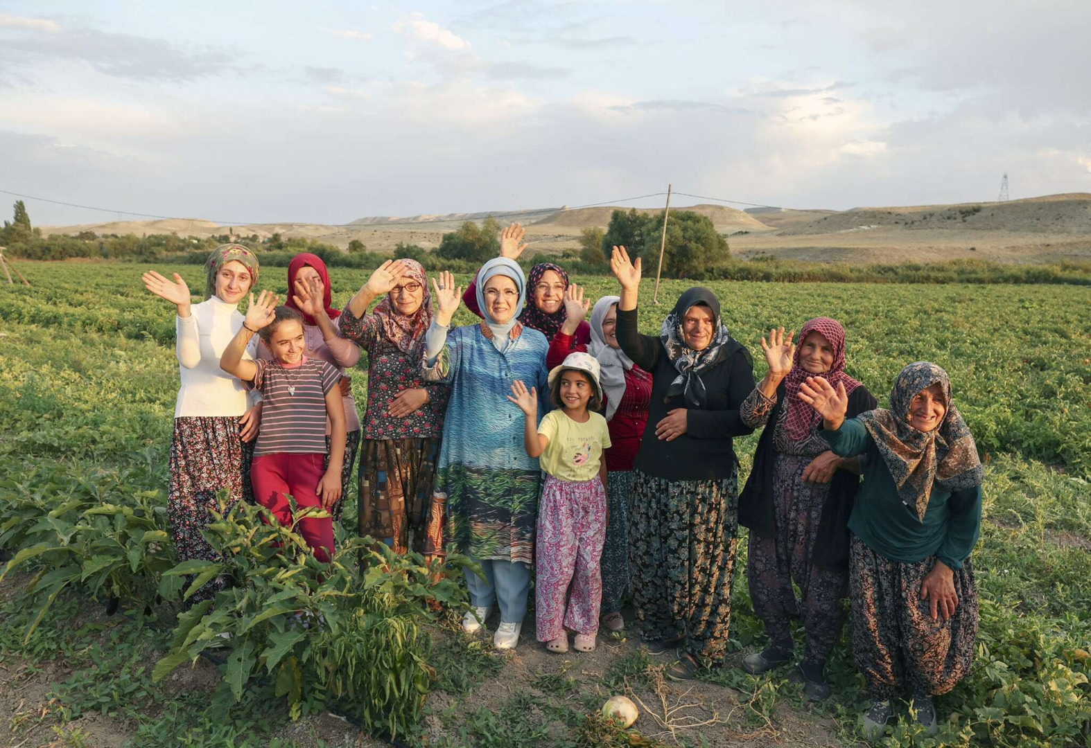 Tarlaya girerek yerli üretimle ve ata tohumlarından elde edilen domatesleri tek tek toplayan Emine Erdoğan, burada çiftçi kadınlarla sohbet etti. 7 yaşındaki Zeynep Varol'u da seven Emine Erdoğan, domatesin yanı sıra patlıcan, kabak, taze soğan gibi tarladaki diğer yerli ürünlerden topladı.