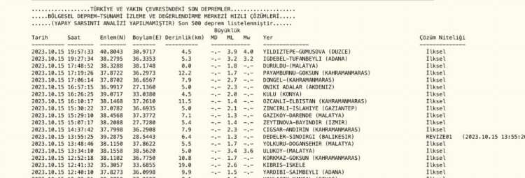 Kandilli Rasathanesi verilerine göre merkezüssü Gümüşova Yıldıztepe olan bir deprem meydana geldi.