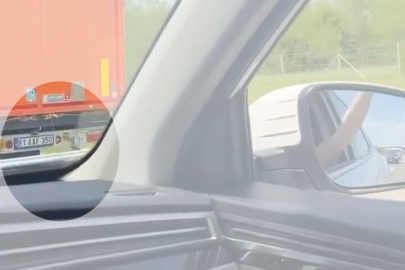 O anları cep telefonuyla kaydeden gurbetçiler, bir süre tırı takip ettikten sonra yollarına devam etti.