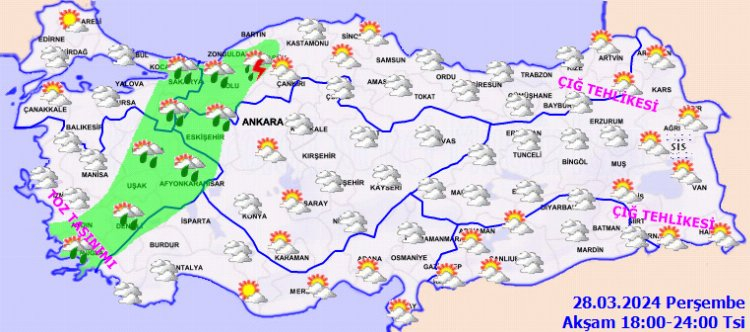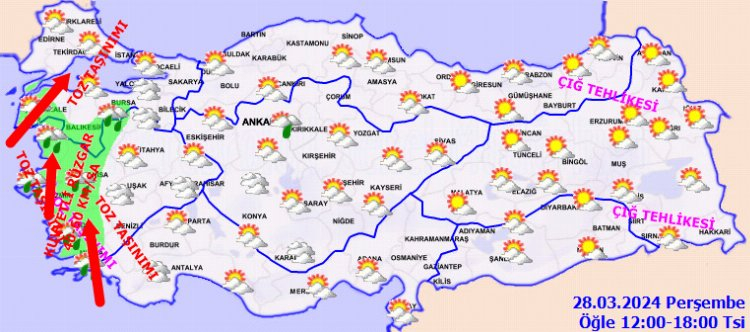 Doğu Karadeniz'in iç kesimlerinin yüksekleri ile Doğu Anadolu'nun yüksek ve dik yamaçlarında çığ tehlikesi bulunmaktadır. Marmara ile Ege'de toz taşınımı beklenmektedir.