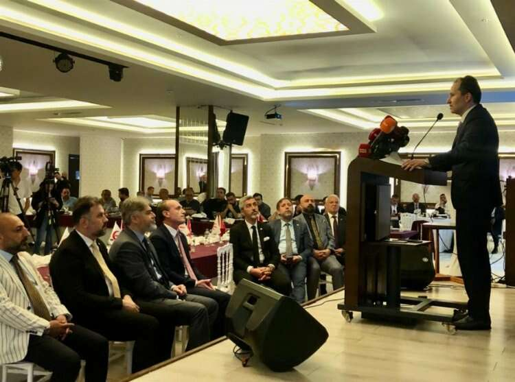 Başkan Erbakan yaptığı konuşmada, "Değerli il başkanımıza, Bursa İl Teşkilatımıza ve Bursa basınına teşekkür ediyor ve hoş geldiniz diyorum. Bu toplantımızın sonuçları ülkemiz için hayırlara vesile olsun diliyorum. Dün İnegöl'de esnaf ziyareti gerçekleştirdik daha sonra Yenişehir ve Gürsu'ya gittik. Türkiye'de 20 seneden beri AK Parti iktidarı iş başında bulunuyor. Kimseye nasip olmamış bir iktidar ve yapılacak yanlışlar için hiç bir mazeret üretemeyecek şekilde ipleri ellerine almışlar. Adaleti sağlayacağız dediler şimdi 20 senenin sonunda güncel verilerle adalet konusunda Türkiye nerede? Kalkınma noktasına baktığımızda ak parti iktidarı dönümünde sanayi yüzde 20'ye düştü. Üretim olmadan kalkınma olur mu ? Ticaret olmadan kalkınma olur mu ? Her sene 60-70 bin dolarlık dış ticaret açığı gerçekleşti. Böyle tabloda ülke kalkınmış bir ülke midir? Yerli ürün üretirken kullanılan ham madde yüzde 82 oranında dışa bağımlı ülke, kalkınmış bir ülke midir? Boğaz'ına kadar batmış bir ülkede kalkınmadan söz edilebilir mi? Çiftçi 70 misli borçlandı. Kamunun borcu 12-13 misli arttığı bir ülkede kalkınma sağlandı demek mümkün müdür? Adı üstüne Adalet ve Kalkınma Partisi. Adaletle ilgili ülkenin karnesi maalesef ortadır. Bugün Türkiye'de gençler 'istersen 3 tane diploman olsun, yabancı dilin olsun, eğer iktidara yakın bir adamın yoksa bu ülkede bir yere gelmen mümkün değil' diyor. Gençler 'imkanım olsa bu ülkede durmam yurt dışına giderim' diyecek hale gelmiştir" dedi.