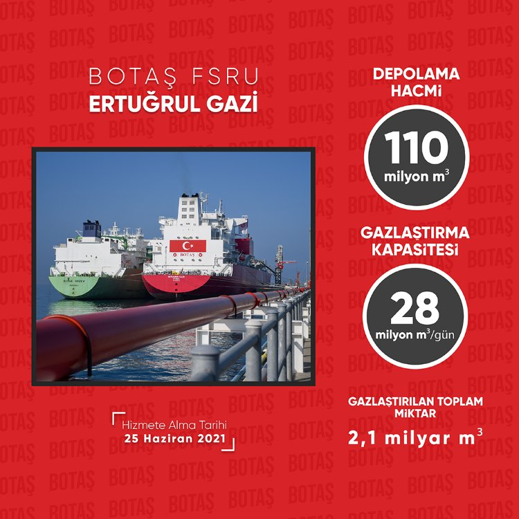 Hatay'ın Dörtyol ilçesinde gerçekleşen törenle hizmete alınan Ertuğrul Gazi FSRU gemisi devreye alındığından bugüne kadar 24 STS (ship-to-ship) operasyonu gerçekleştirdi.