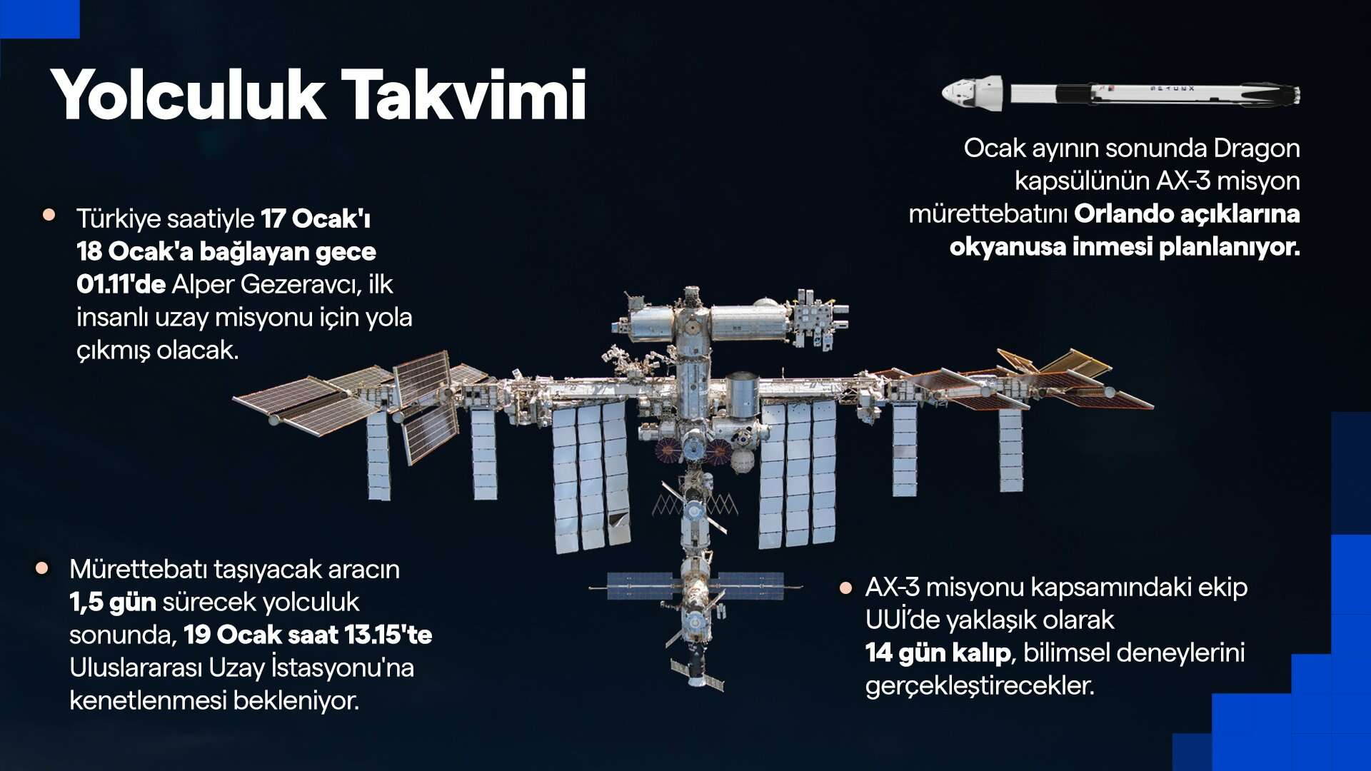 ANKARA (İGFA) - 17 Ocak’ı 18 Ocak’a bağlayan gece TSİ 01.11’de Türk Astronot Alper Gezeravcı'yı da taşıyan roket uzaya fırlatılacak.