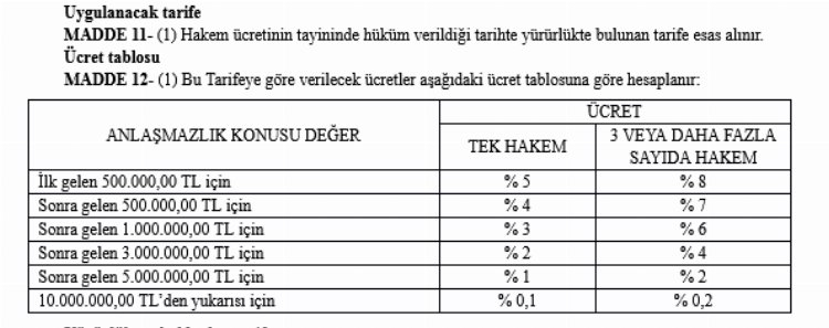 –– Hukuk Muhakemeleri Kanunu Hakem Ücret Tarifesi