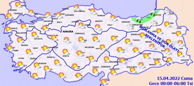 ANKARA (İGFA) - Meteoroloji Genel Müdürlüğü tarafından yapılan son değerlendirmelere göre ülkenin kuzey kesimlerinin parçalı ve yer yer çok bulutlu, Orta ve Doğu Karadeniz kıyıları ile Sinop ve Kastamonu'nun kuzey çevrelerinin yağışlı, diğer yerlerin az bulutlu ve açık geçeceği tahmin ediliyor.
