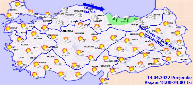 Meteoroloji'den alınan bilgilere göre hava sıcaklığının iç kesimlerde 2 ila 4 derece artacağı, diğer yerlerde önemli bir değişiklik olmayacağı, iç ve doğu kesimlerde mevsim normalleri altında seyretmeye devam edeceği tahmin edildi.