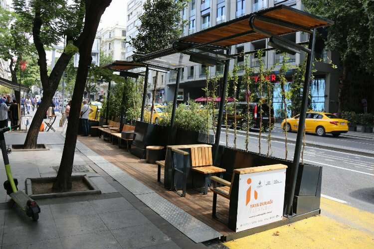 Böylece yayalar ve bisiklet kullanıcıları için dinlenme alanları oluşturuluyor. Çevresi bitkilerle donatılan yaya durakları, hareket halindeki İstanbullulara dinlenme imkanı sağlıyor. Duraklarda ayrıca bisiklet ve scooter park alanları da bulunuyor.