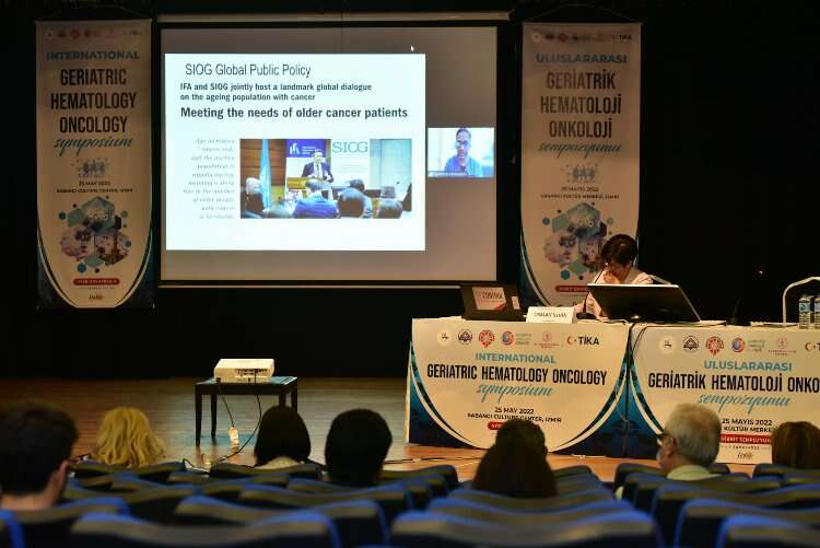 İZMİR İGFA- Dokuz Eylül Üniversitesi (DEÜ) Onkoloji Enstitüsü, Geriatrik Hematoloji Derneği ve Geriatrik Onkoloji Derneği iş birliği ile düzenlenen Uluslararası Geriatrik Hematoloji Onkoloji Sempozyumu DEÜ Sabancı Kültür Sarayı’nda gerçekleştirildi. Türk İşbirliği ve Koordinasyon Ajansı Başkanlığı’nın (TİKA) katkılarıyla gerçekleştirilen hibrit sempozyum, dünyada ve Türkiye'de Geriatrik Hematoloji-Onkoloji ile ilgilenen hematoloji, tıbbi onkoloji ve farmakoloji uzmanlarını, geriatristleri ve gerontologları bir araya getirdi. Alanında yetkin isimlerin görüşlerini paylaştığı sempozyumda, mevcut kanser vakalarının yüzde 60’nın ve kansere bağlı ölümlerin yüzde 70’inin gerçekleştiği 65 yaş ve üzeri kanserlerinde yaklaşan ‘Silver Tsunami’ dalgasına karşı alınacak önlemler tartışıldı.