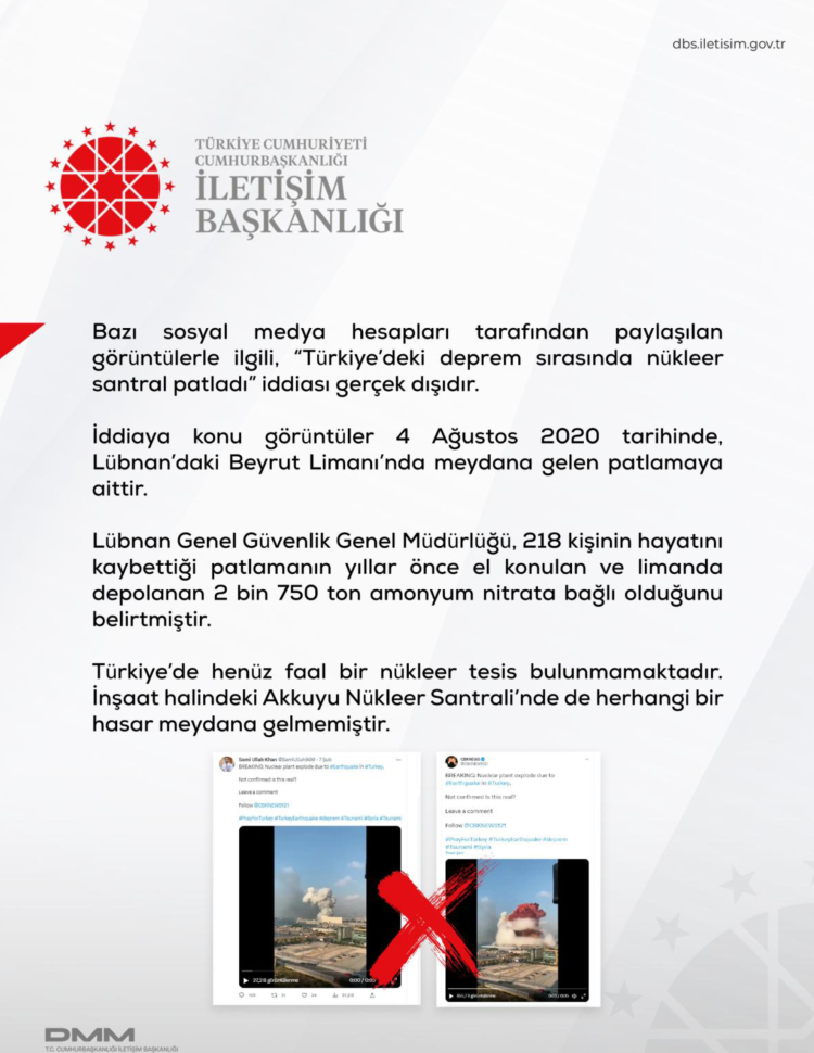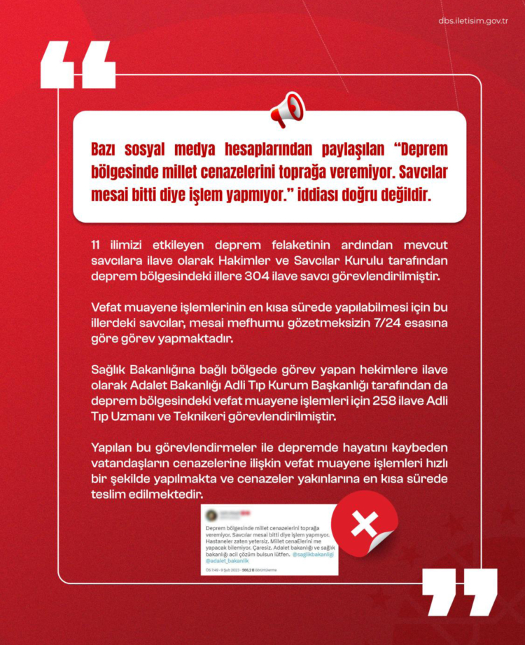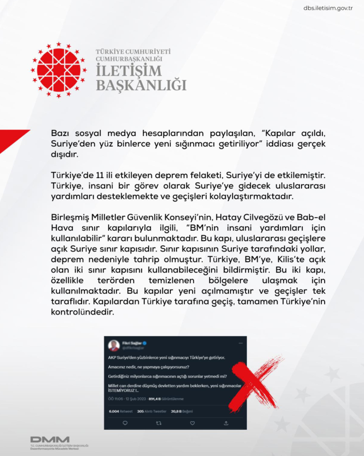 Her bir iddianın resmî veriler ve saha kayıtlarıyla çürütüldüğü belirtilirken, İletişim Başkanlığı vatandaşları kaynağı belirsiz bilgileri paylaşmamaya ve resmî açıklamaları esas almaya çağırdı.