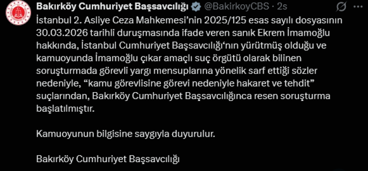 Bu kapsamda, söz konusu ifadeler nedeniyle İmamoğlu hakkında “kamu görevlisine görevi nedeniyle hakaret ve tehdit” suçlarından resen soruşturma başlatıldığı kaydedildi.