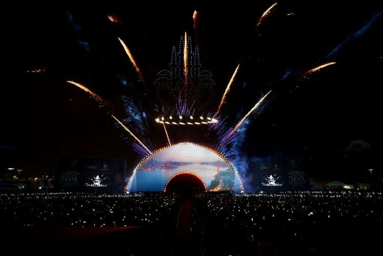 İmamoğlu’nun konuşmasının ardından İstanbul’un Fethi’nin anlatıldığı video, 400 drone ile gerçekleştirilen görsel şölen ve “mapping” gösterisi sunuldu. İstanbullular, muhteşem görsel şölene hem alanda hem de canlı yayınla farklı kitle iletişim araçları aracılığıyla tanıklık etti. Etkinlik, Teoman konseriyle son buldu.