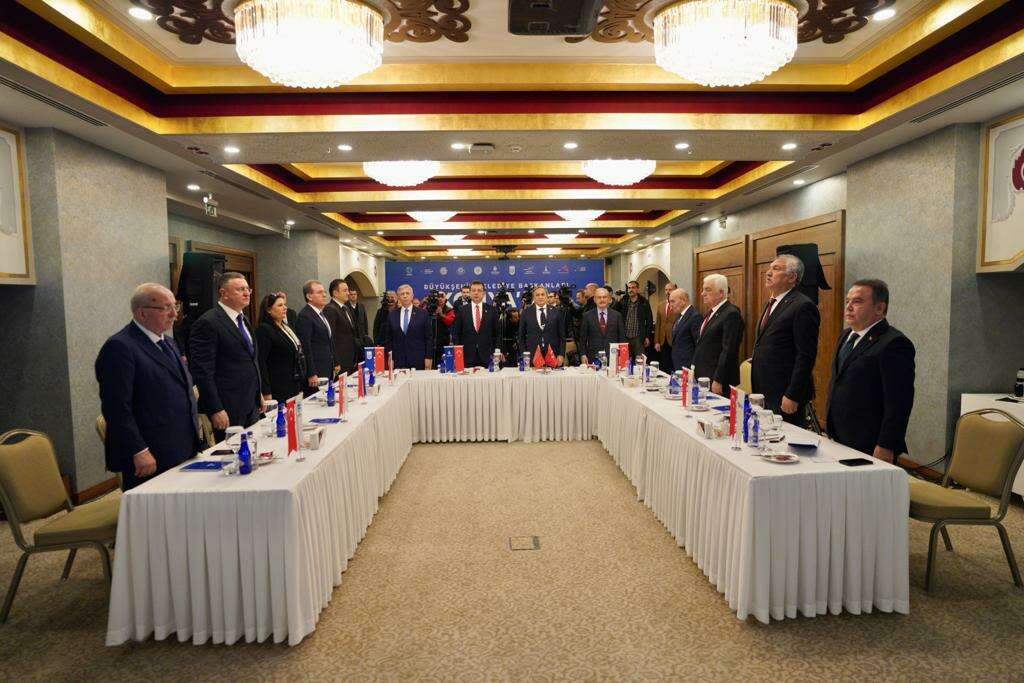 Millet İtifakı’na bağlı CHP’li 11 Büyükşehir Belediyesi olarak, iktidar kanadından gelen baskılara göğüs germek zorunda kaldıklarını belirten İmamoğlu, kendilerine hukuksuz bir süreç yaşatıldığına vurgu yaptı. “Zamanla ülkeyi yönetenler, milletimizin temsilcileri olduklarını unuttular ve kendilerini, devletin sahibi olmaya dönük bir sıfata, bir fıtrata büründüler” diyen İmamoğlu, “Öyle ki, İstanbul'da bunun örneklerini çokça tespit ediyoruz. Memleketi de İstanbul gibi, kendi mülkleri sanmaya başladılar. Tüm bu hamleleri millet vicdanında boşa çıkaracak 11 Büyükşehir Belediye Başkanımızla bir arada, buradayız. Türkiye'nin demokrat, hoşgörülü, erdemli, çok çalışkan ve başarılı belediye başkanları. Bizler, Türkiye'nin yarısından fazlasına hizmet vermek için canla başla, 7/24 çalışan neferleriz. Cumhuriyet Halk Partisi'nin ve Millet İttifakı'nın başarılı belediye başkanlarıyız” ifadelerini kullandı.