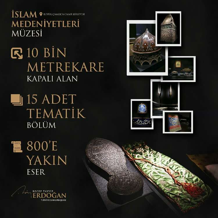 Cumhurbaşkanı Recep Tayyip Erdoğan, 1200 yıllık izleri taşıyan ve pek çoğu daha önce teşhir edilmemiş 800’e yakın eserin sergilendiği Büyük Çamlıca Camisi Külliyesi’ndeki İslam Medeniyetleri Müzesi’nin açılışını gerçekleştirdi.