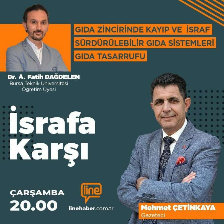 Mehmet Çetinkaya’nın bu haftaki konuğu Bursa Teknik Üniversitesi Gıda Mühendisliği Bölümü Öğretim Üyesi Dr. A. Fatih Dağdelen olacak. Dağdelen, 13 Temmuz Çarşamba günü saat 20.00’de Line TV ekranlarında, ‘Gıda Zincirinde Kayıp ve İsraf, Sürdürülebilir Gıda Sistemleri ve Gıda Tasarrufu’ konularını üzerine deneyim ve görüşlerini paylaşacak.