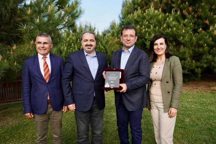 İBB Genel Sekreter Yardımcısı Şengül Altan Arslan ve Sağlık Daire Başkanı Önder Yüksel Eryiğit’in eşlik ettiği Başkan İmamoğlu, kurul üyelerini plaketle onurlandırdı.