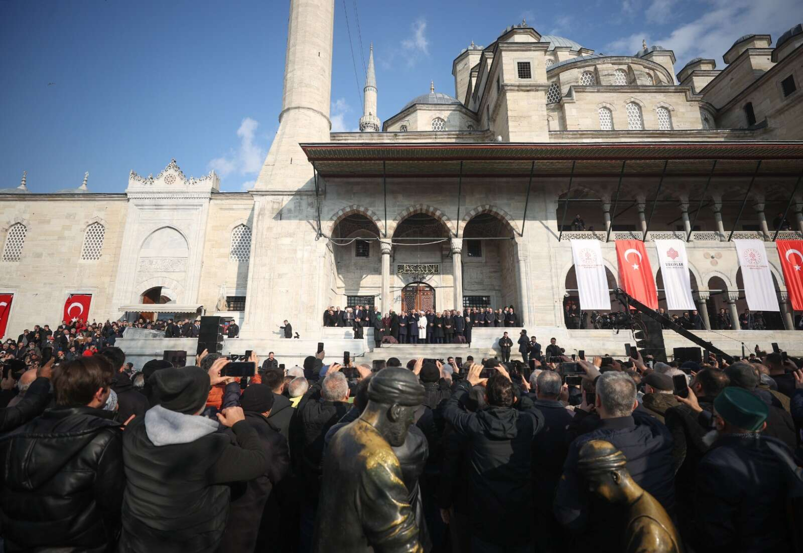 Cumhurbaşkanı Erdoğan, İstanbul Müftüsü Safi Arpaguş'un duasının ardından beraberindekilerle kurdele keserek caminin açılışını gerçekleştirdi.