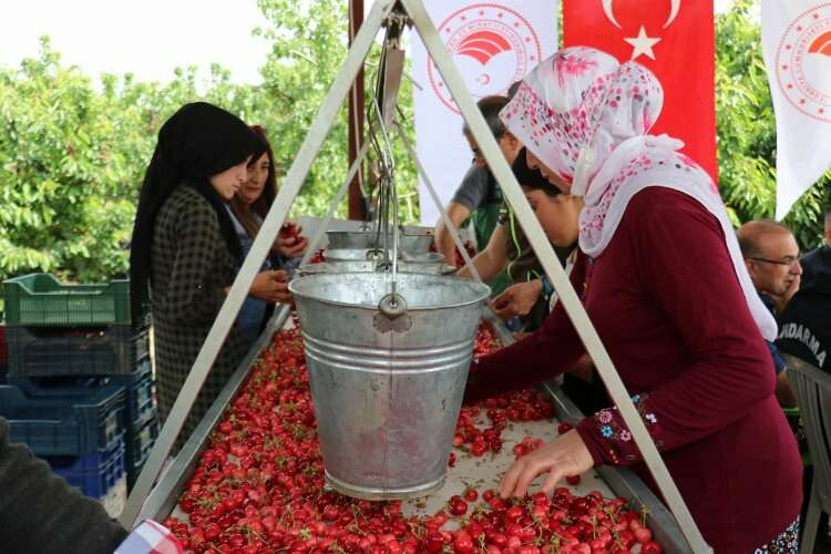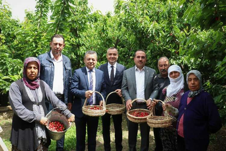 İZMİR İGFA- Üretici Mehmet Ali Akdemir’in kiraz bahçesinde gerçekleştirilen İlk hasat etkinliğinde AK Parti İzmir Milletvekili Yaşar Kırkpınar, Kemalpaşa Kaymakamı Musa Sarı, İzmir İl Tarım ve Orman Müdürü Mustafa Özen, Kemalpaşa Ziraat Odası Başkanı Bülent Oray, ilçe idari amirleri ve üreticiler bir araya geldi.