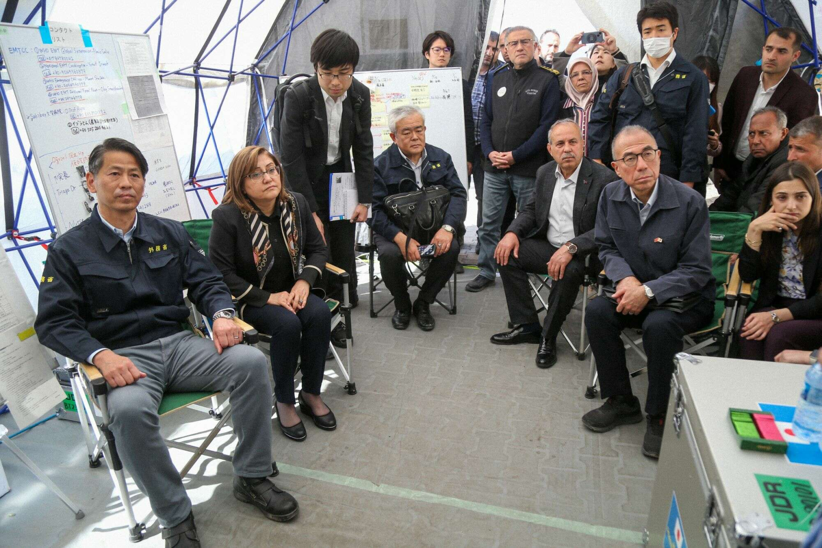 Gaziantep Büyükşehir Belediye Başkanı Fatma Şahin ile Japonya Dışişleri Bakan Yardımcısı Yamada Kenji Gaziantep’in Oğuzeli ilçesinde Japon sağlık ekibinin kurduğu sahra hastanesini ziyaret etti.