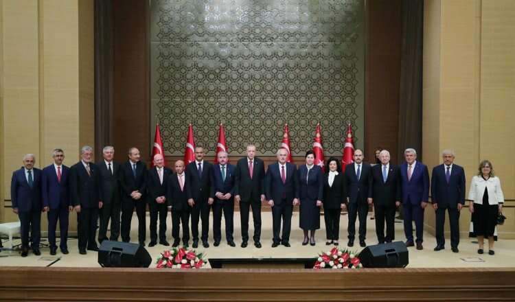 Cumhurbaşkanı Erdoğan, törene katılan TBMM Başkanı Mustafa Şentop, Yargıtay Başkanı Mehmet Akarca ve Kamu Görevlileri Etik Kurulu üyeleriyle fotoğraf çektirdi.