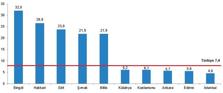 İllere göre ölümlü yaralanmalı kaza sayıları incelendiğinde bin taşıt başına en fazla ölümlü yaralanmalı kazanın Bingöl'de en az İstanbul'da gerçekleştiği görüldü.