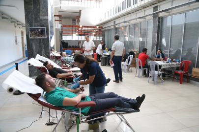 Kan bağışında bulunan belediye personeli, tüm vatandaşları da kan vermeye davet etti.