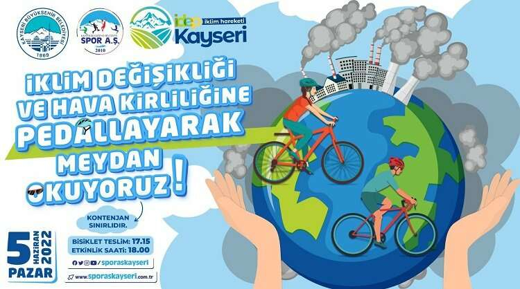 Kayseri Büyükşehir Belediyesi İklim Değişikliği ve Sıfır Atık Daire Başkanlığı ile Spor A.Ş. işbirliğinde, Dünya Çevre Günü’nde, iklim değişikliği ve hava kirliliği için farkındalık oluşturmak amacıyla 10 kilometrelik parkurda bisiklet turu düzenleyecek.
