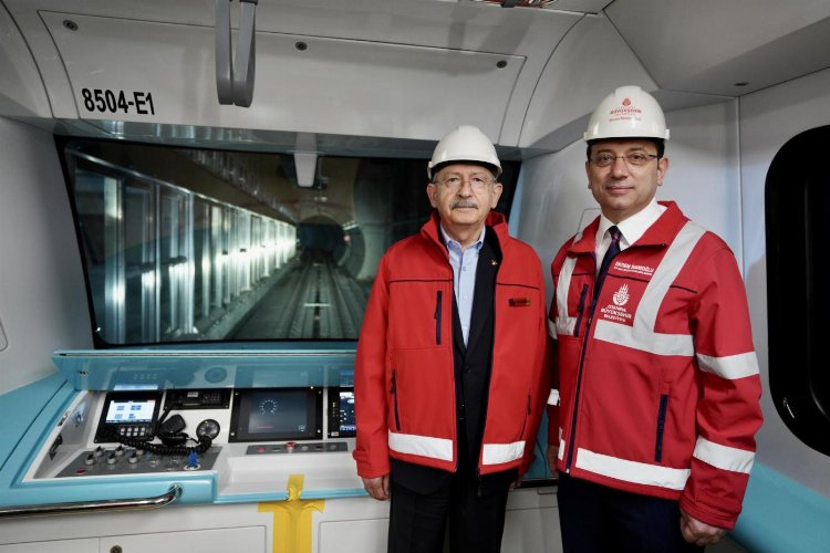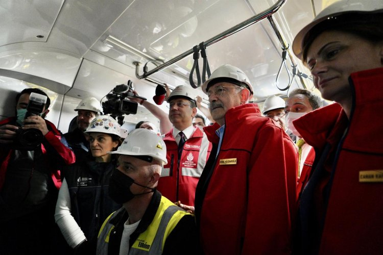 İSTANBUL (İGFA)- CHP Genel Başkanı Kemal Kılıçdaroğlu ve TBMM CHP Başkanvekili Engin Altay, CHP İstanbul İl Başkanı Canan Kaftancıoğlu ile İstanbul Büyükşehir Belediye (İBB) Başkanı Ekrem İmamoğlu rehberliğinde kısa bir İstanbul turu yaparak, İBB’nin hizmetlerini yerinde deneyimledi. Kılıçdaroğlu ve beraberindeki heyetin ilk durağı, Dudullu-Bostancı Metro Hattı’nın Kayışdağı İstasyonu oldu. İBB Genel Sekreter Yardımcısı Pelin Alpkökin, Kayışdağı ve Mevlana İstasyonları arasında gerçekleştirilecek test sürüşü öncesinde, Kılıçdaroğlu ile beraberindeki heyeti bilgilendirdi. Heyet, önceki İBB idaresinin yapımına 2016’da başlayıp, 2019 Mart’ında durma noktasına getirdiği, yeni İBB yönetiminin finansman sorununu çözüp, 10 Temmuz 2020’de yeniden yapımına başlattığı hatta test sürüşü gerçekleştirdi. Kayışdağı ve Mevlana İstasyonları arasındaki 1,5 kilometrelik mesafe, başarıyla kat edildi. Kılıçdaroğlu, Altay, Kaftancıoğlu ve İmamoğlu, test sürüşünün ardından Mevlana İstasyonu’nunda metro inşaatı emekçileriyle anı fotoğrafı çektirdi.