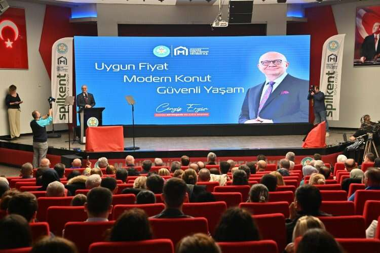 MANİSA (İGFA) - Manisa Büyükşehir Belediyesinin Spilkent Toplu Konut Projesi’nin tanıtımı, Kültür Merkezi Lale Salonu’nda yapıldı. Proje tanıtım toplantısına Manisa Büyükşehir Belediye Başkanı Cengiz Ergün, MHP MYK Üyesi Mehmet Ödevli, Cumhur İttifakı Şehzadeler Belediye Başkan Adayı Yavuz Kurt, MHP İl Başkanı Cüneyt Tosuner, AK Parti İl Başkanvekili Nurettin Aytekin, Ülkü Ocakları İl Başkanı Emirhan Sallıtepe, MHP Şehzadeler İlçe Başkanı Şener Özten, MHP Yunusemre İlçe Başkanı Bülent Kovancıoğlu, Büyükşehir ve MASKİ Genel Müdürlüğü bürokratları, Manisa’yı Mesir’i Tanıtma ve Turizm Derneği Başkanı Ufuk Tanık, sivil toplum kuruluşu temsilcileri, muhtarlar ve çok sayıda vatandaş katıldı. Saygı duruşu ve İstiklal Marşı’nın okunmasının ardından, heyecan uyandıran projenin tanıtımını içeren video gösterimi yapıldı.