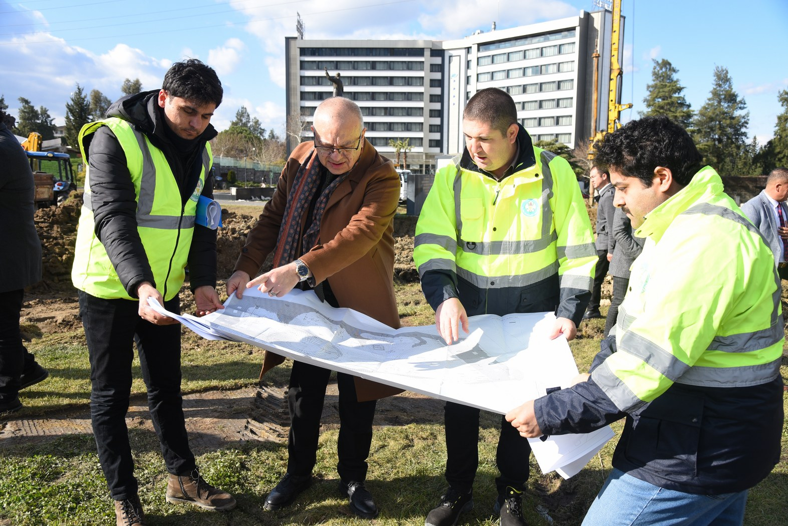 Manisa Büyükşehir Belediye Başkanı Cengiz Ergün de Büyükşehir Belediyesi Hizmet Binası yanında yapımına başlanan projenin ilk adımlarını yerinde inceledi.