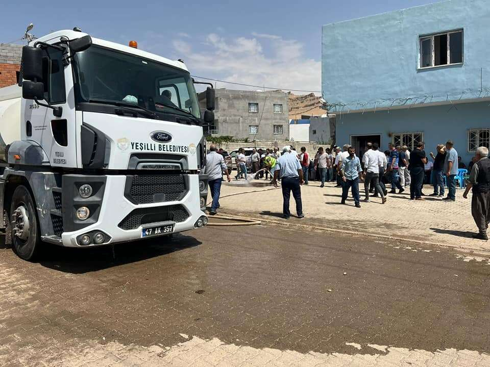İhtiyaçların giderilmesi konusunda önayak olan Yeşilli Belediyesi, 20 personelini Derik'te devam eden taziye yerlerinde görevlendirerek, temizlik personeli, 4 arazöz ve su tankeri ile birlikte hazır su takviyesinde bulundu. Yeşilli Belediyesi'nin bu duyarlılığı taziye sahipleri tarafından da memnuniyetle karşılandı.