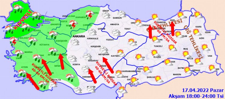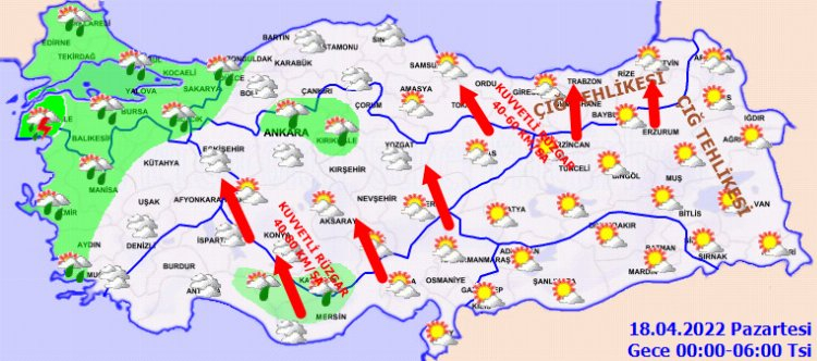 Pazartesi günü iç ve kuzey kesimlerde güneyli yönlerden kuvvetli ve yer yer fırtına şeklinde esecek rüzgarla birlikte yer yer toz savrulması da bekleniyor.