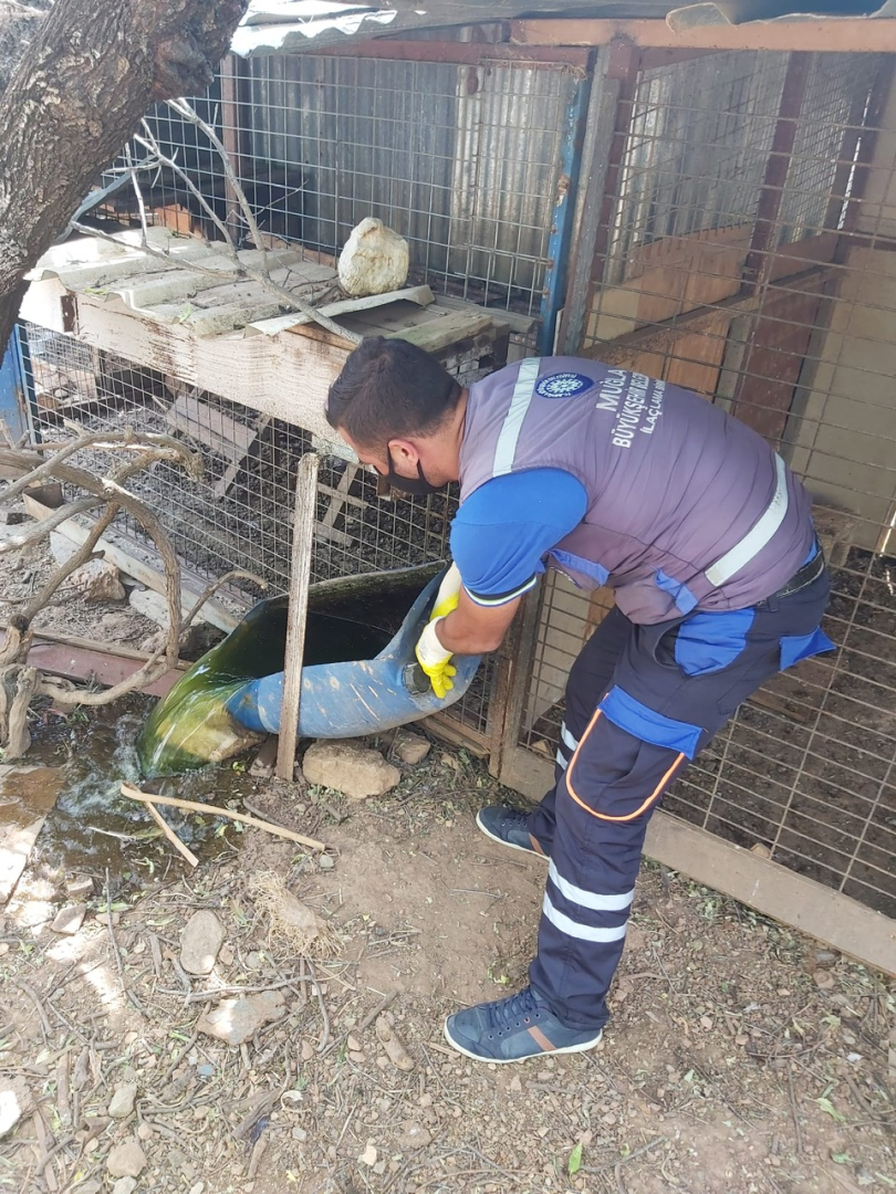 Muğla Büyükşehir Belediyesi vektörle mücadele ekipleri durgun sularda üreyen sivrisineklere karşı düzenli olarak alan taraması çalışmalarını yürütürken, sivrisineklerin üreme kaynağının bulunması, kaynağın ortadan kaldırılmasına yönelik fiziksel tedbirlerin alınması, vatandaşın bilgilendirilmesi ve sivrisinek larvalarının ergin hale gelerek çoğalmamaları için larvasit uygulaması yapıldı.