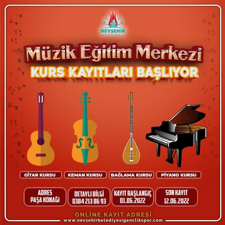 Nevşehir Belediyesi Müzik Eğitim Merkezi’nde açılacak olan ücretsiz müzik kursları için son başvuru tarihi 12 Haziran 2022 olarak duyuruldu.