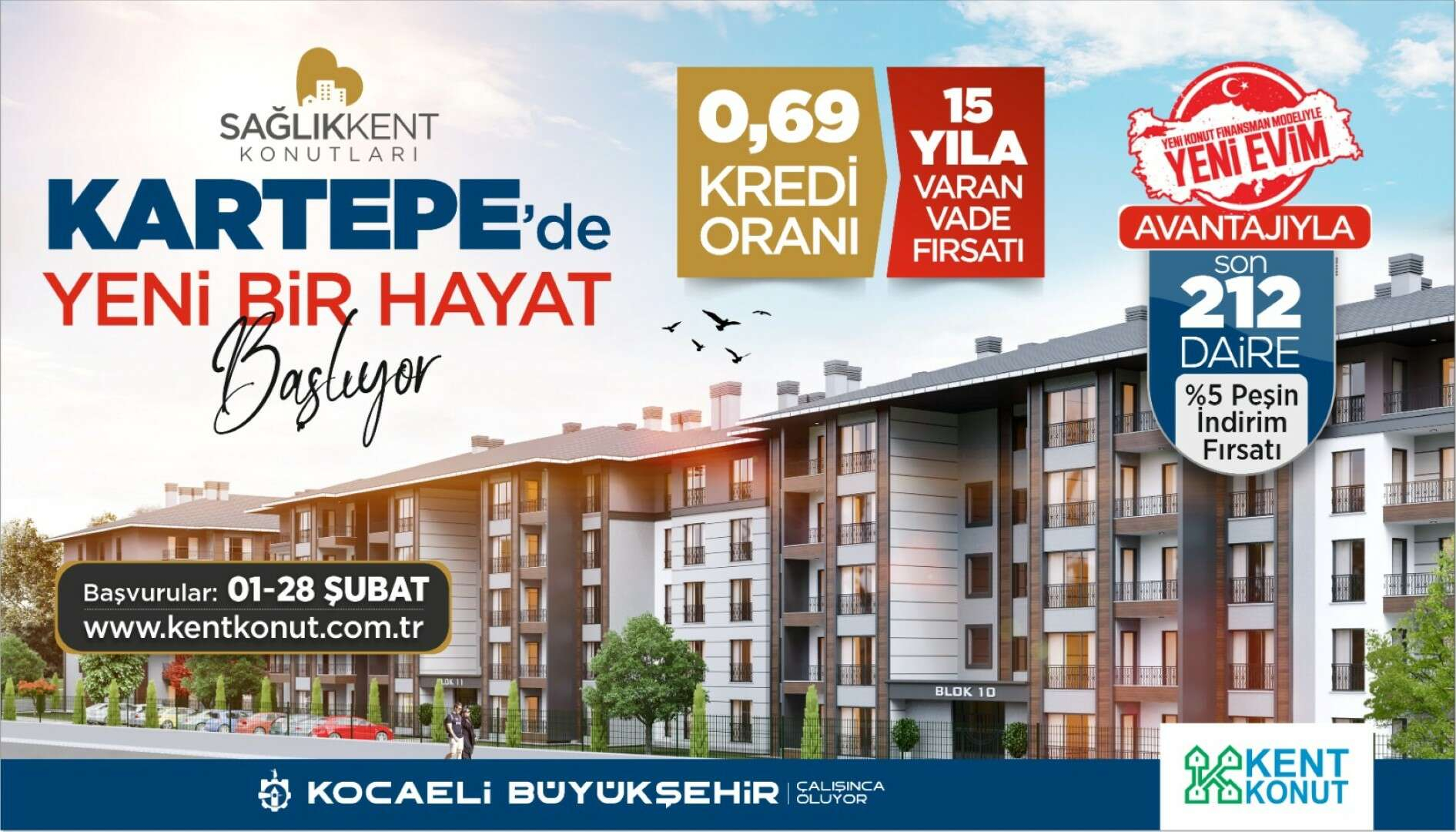 Kartepe Kent Meydanı’nda yer alan ve inşaatı devam eden projede 212 daire için 1 Şubat-28 Şubat 2023 tarihleri arasında ön başvurular alınacak. Hak sahipleri kura sistemi ile belirlenecek.