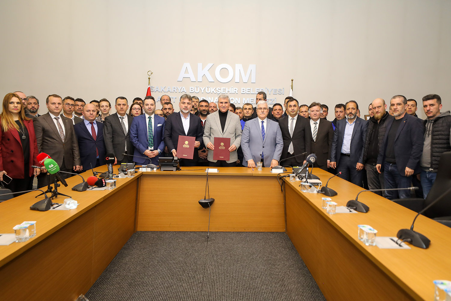 Sakarya Büyükşehir Belediyesi ile Hizmet-İş Sendikası arasında toplu iş sözleşmesi imzalandı. Büyükşehir Belediyesi SASAY ve SASKİ Personel A.Ş çalışanı 3 bin 114 kişiyi ilgilendiren toplu iş sözleşmesiyle maaşlara toplamda yüzde 80’e varan zam yapıldı.