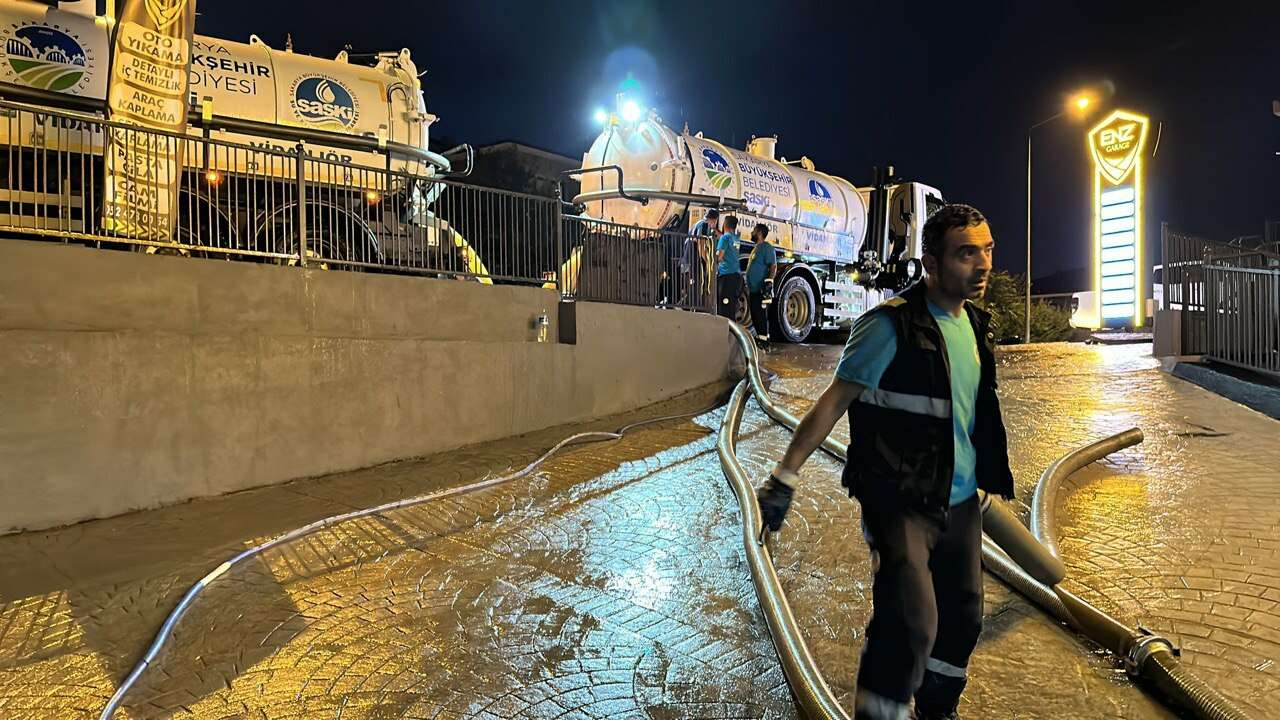 Çok kuvvetli şekilde yağan yağışın can ve mal kaybına sebep olmaması için 182 personel, 15 kanal aracı, 33 vidanjör ve 22 kazıcı yükleyici aralıksız şekilde mesai yapıyor.