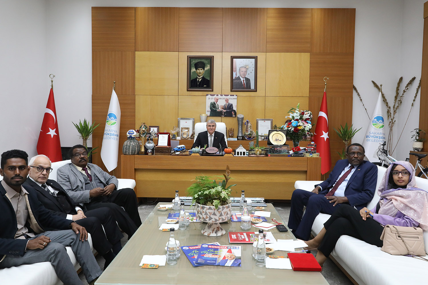 Mezuniyet töreni sonrası Başkan Ekrem Yüce, Sudan Ankara Büyükelçisi Nadir YousifEltayeb ve Sudan’lı öğrencileri makamında ağırladı.