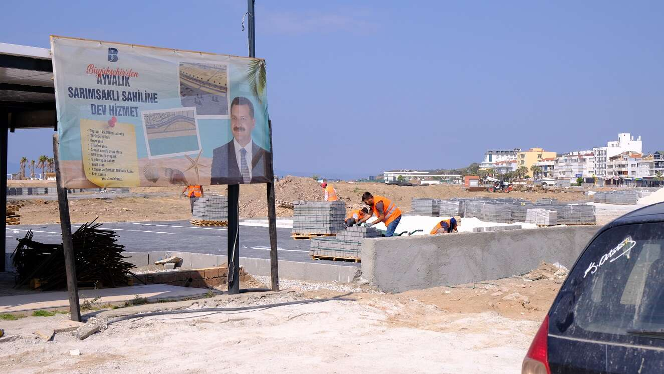 Sarımsaklı plajında 230 dönümlük alanda Balıkesir Büyükşehir Belediyesi tarafından başlayan çalışmalarda, sahil plaj kumu taş ve betonla kaplanarak şantiye alanına çevrildi.