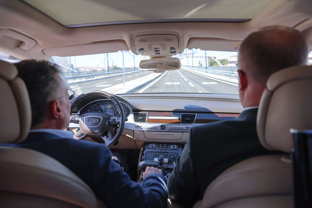 TBMM AK Parti Grup Başkanı Abdullah Güler ve Belediye Başkanı Hilmi Bilgin, makam aracına binerek yolda ilk sürüşü gerçekleştirdi.