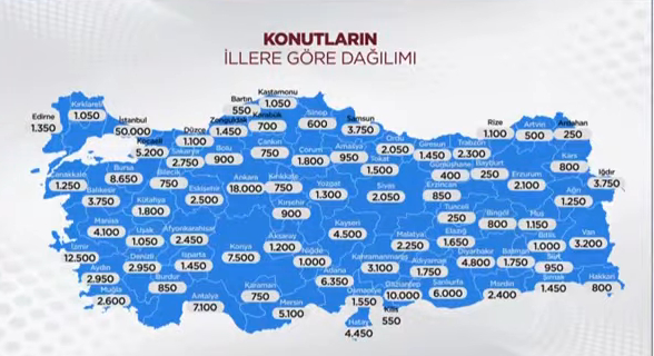 İlk etapta 250 bin sosyal konut, 100 bin konut arsası, 10 bin işyerinin “İlk Evim İlk İş Yerim” projesi atı altında başvuruları kabul edecek. Konutların dağılımıyla ilgili de bilgi veren Bakan Kurum, “Yüzde 5’inin şehit ve gazi ailelerine 12 bin 500 konut, yüzde 5 engelli vatandaşlarımıza 12 bin 500 konut, yüzde 20 emekli vatandaşların 50 bin konut, yüzde 20’si 18-30 yaş arası gençler için 50 bin konut ve yüzde 50 diğer kesimin olacak” dedi. Hane gelirinin İstanbul’da 18 bin lira altı, diğer illerde 16 bin lira olan kişlierin başvuru yapabileceğini belirten Bakan Kurum, arsa ve işyerlerine yönelik başvuru detayları da paylaştı.