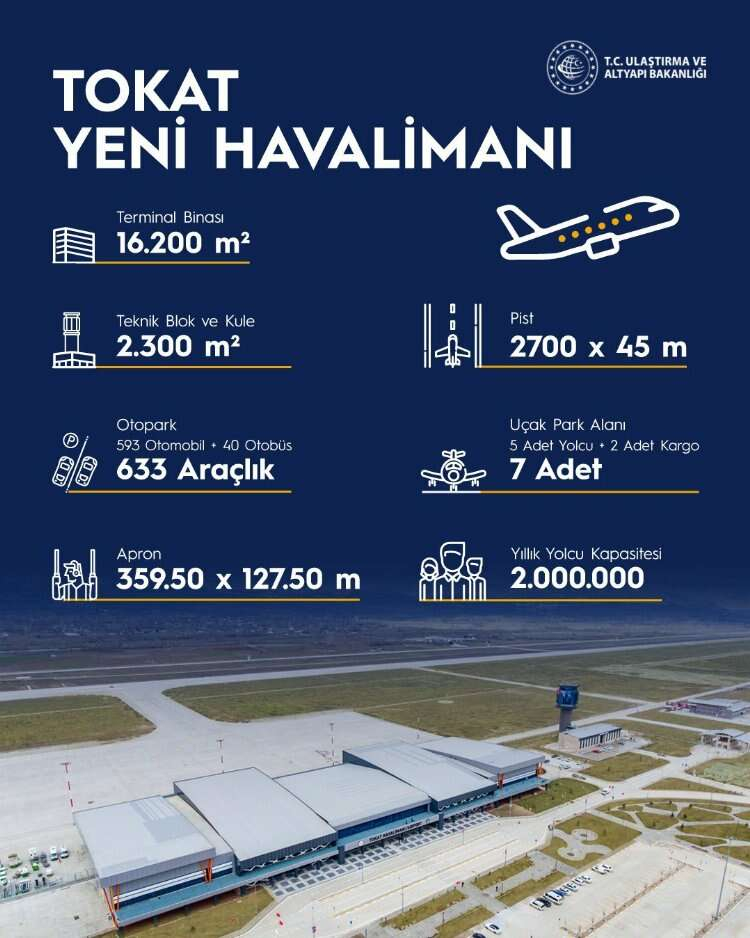 Tokat'ta 2018 yılında eski havalimanının yanında inşasına başlanan yeni havalimanı ise tamamlanma aşamasına geldi.