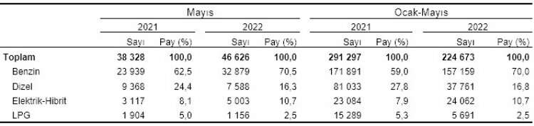 Trafiğe kayıtlı toplam taşıt sayısı da Mayıs ayı sonu itibarıyla 25 milyon 704 bin 749 oldu.