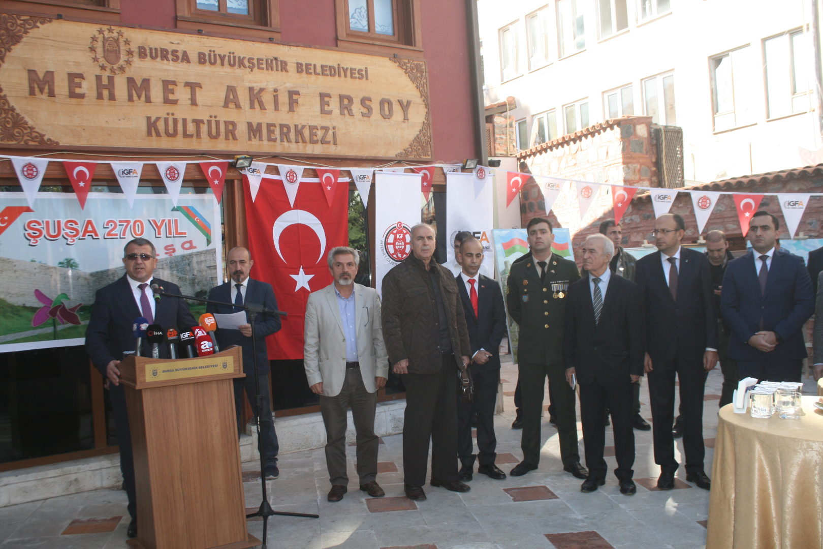 İlk konuşmaları eserleri sergilenen ressam Ali Tahmine ve İSBAM Genel Başkanı ve İGF Azerbaycan Temsilcisi Samir Adigozelli yaptı. Türkiye ile çok güzel çalışmalara imza attıklarını belirten İSBAM Genel Başkanı ve İGF Azerbaycan Temsilcisi Samir Adigozelli de, Türk Dünyası Kültür Başkenti Bursa'da böyle bir programı yapmaktan dolayı mutluluk duyduğunu ifade ederek, “Bugünlere şükürler olsun ki, Şuşa'nın 270 yılını kutlamanın mutluluğunu yaşıyoruz. Türkiye ve Azerbaycan birlikteliği bizleri mutlu etmektedir. Gazilerimize sağlık, şehitlerimiz önünde saygıyla eğiliyorum" dedi.