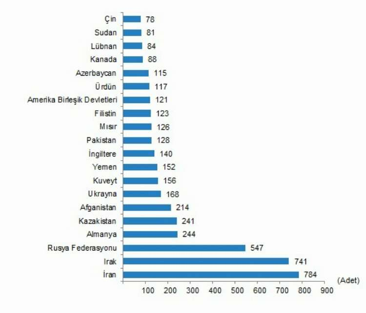 Ülke uyruklarına göre Mart ayında da en çok konut satışı İran vatandaşlarına yapıldı. İran vatandaşları Türkiye'den 784 konut satın alırken İran'ı sırasıyla 741 konut ile Irak, 547 konut ile Rusya Federasyonu vatandaşları izledi.