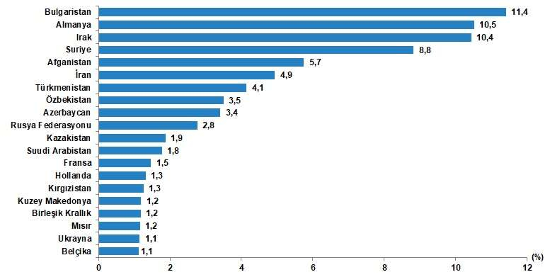 Doğum yeri yurt dışı olanlar içinde Bulgaristan doğumlular ilk sırada yer aldı.