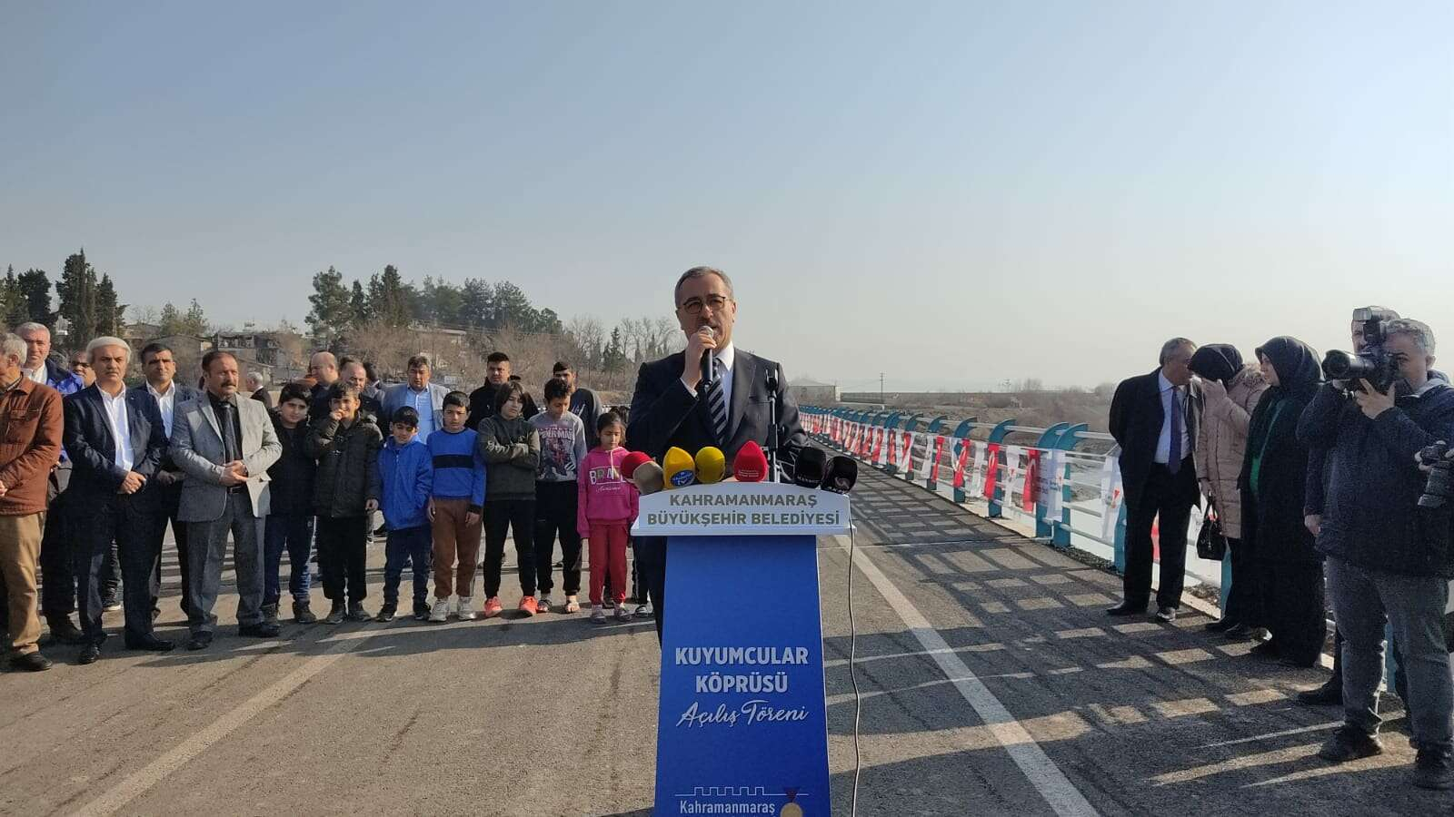 Kuyumcular köprüsünün ilçenin ulaşım mesafesini kısaltarak, trafiği rahatlacağının altını çizen Kahramanmaraş Büyükşehir Belediye Başkanı Hayrettin Güngör ise konuşmasında şu ifadelere yer verdi: “100 metre uzunluğunda ve 11 metre genişliğinde, 7 ayaktan oluşan Kuyumcular Köprüsü vatandaşlarımızın ulaşımını rahatlatacak. 12 Milyon TL’lik bir yatırım olan bu köprümüzün hayırlı olmasını temenni ediyorum.”