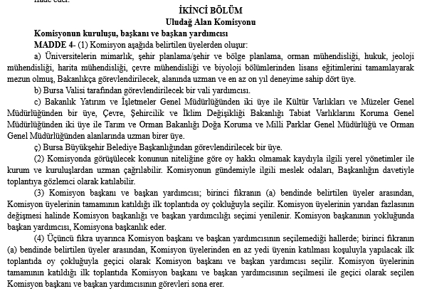 Uludağ Alan Komisyonunun Kuruluşu, Görevleri, Çalışma Usul ve Esasları Hakkında Yönetmelik bugünkü Resmi Gazete'de yayımlandı.