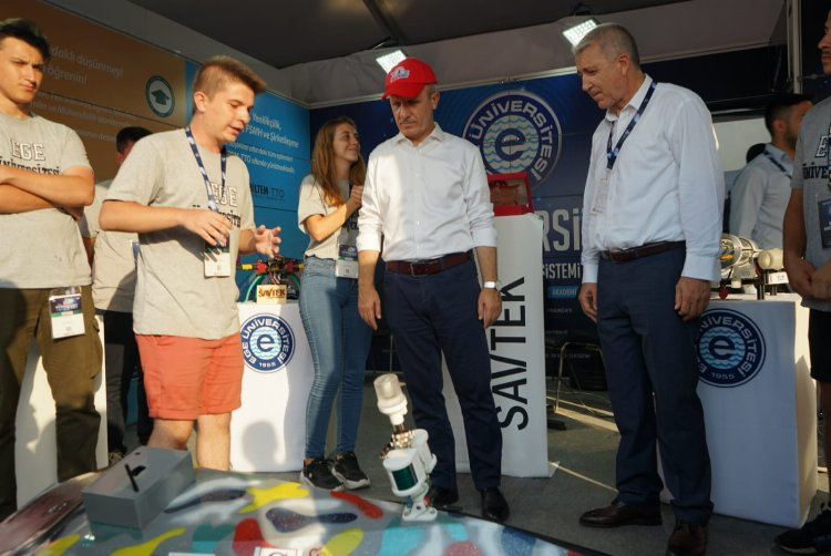 Ege Üniversitesi standının yoğun ilgi görmesi ve YÖK Başkanı Prof. Dr. Özvar’ın ziyaretinden duyduğu memnuniyeti dile getiren Rektör Prof. Dr. Necdet Budak, üniversitede oluşturulan bilimsel ekosistemin çıktılarını Ülkemizin Milli Teknoloji Hamlesi olan TEKNOFEST’te sergilemenin kendileri için onur ve gurur verici olduğunu söyledi.