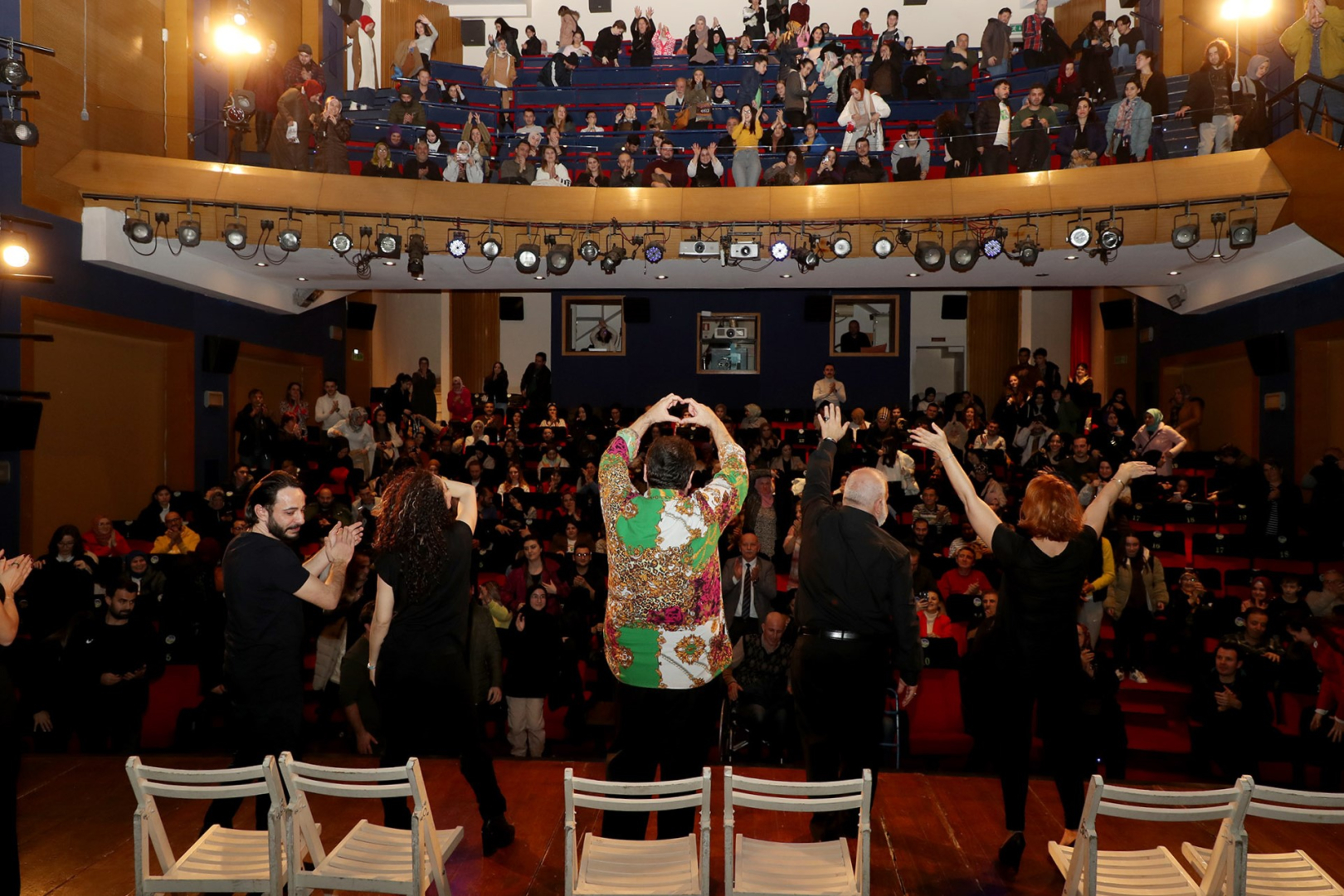 Oyuncu kadrosu, sahne sonunda katılımcılarla fotoğraf çekildi.