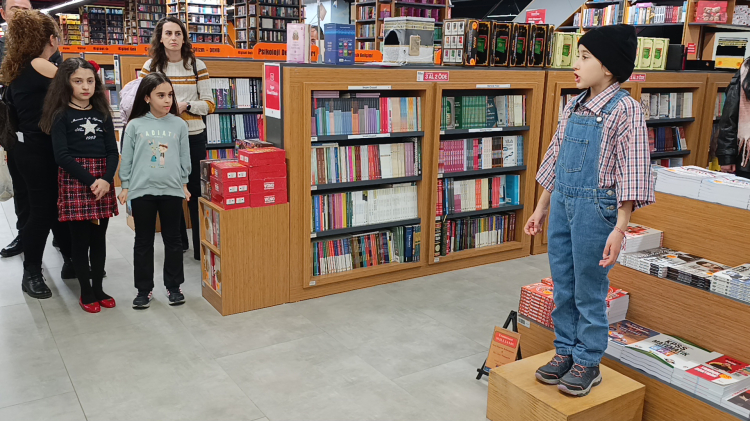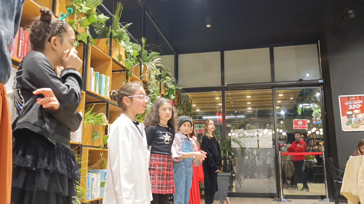 Tiyatro eğitmeni Batuhan Tozkoparan tarafından hazırlanan çocuklar, mağazanın çeşitli noktalarında eş zamanlı performanslar sergilerken, kafe bölümünde ise toplu gösterimle monologlarını sahneleyerek, büyük bir heyecan ve başarıyla performanslarını tamamladı.